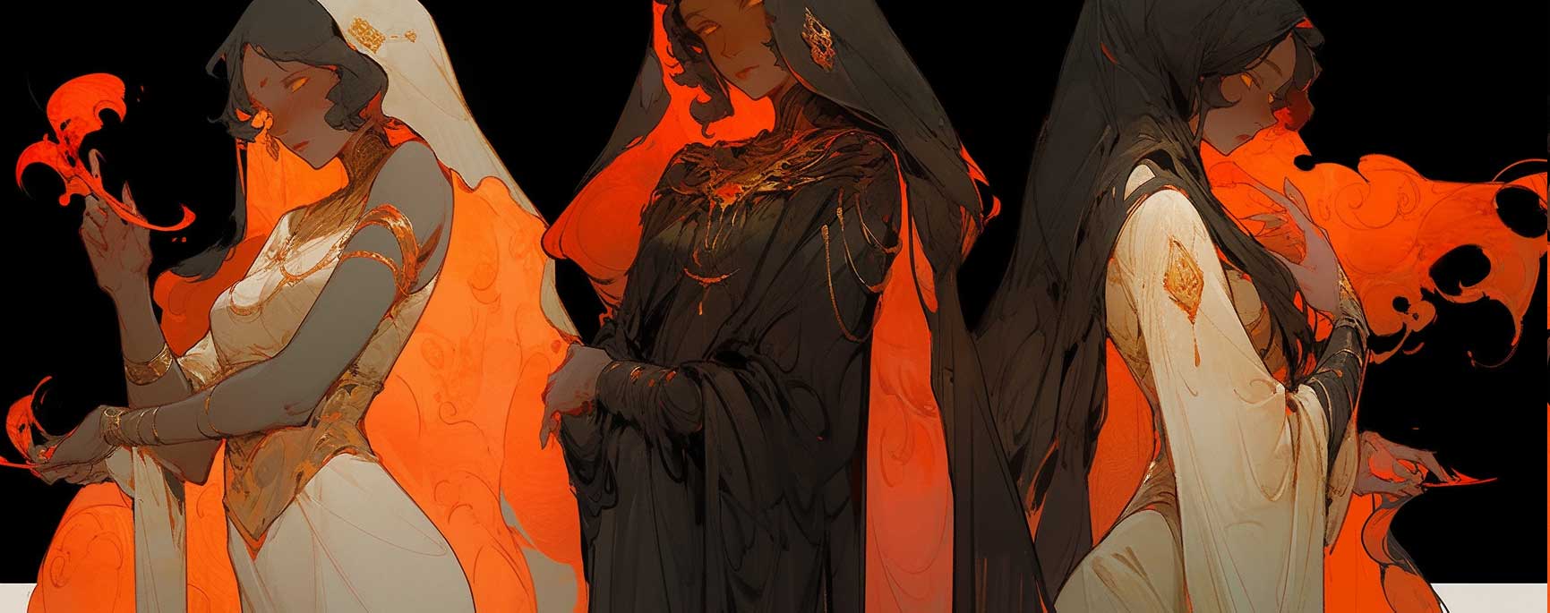 当該シリーズの女性たちが仏像のような印を結んでいることは北九州市立美術館学芸員の重松知美が指摘している。