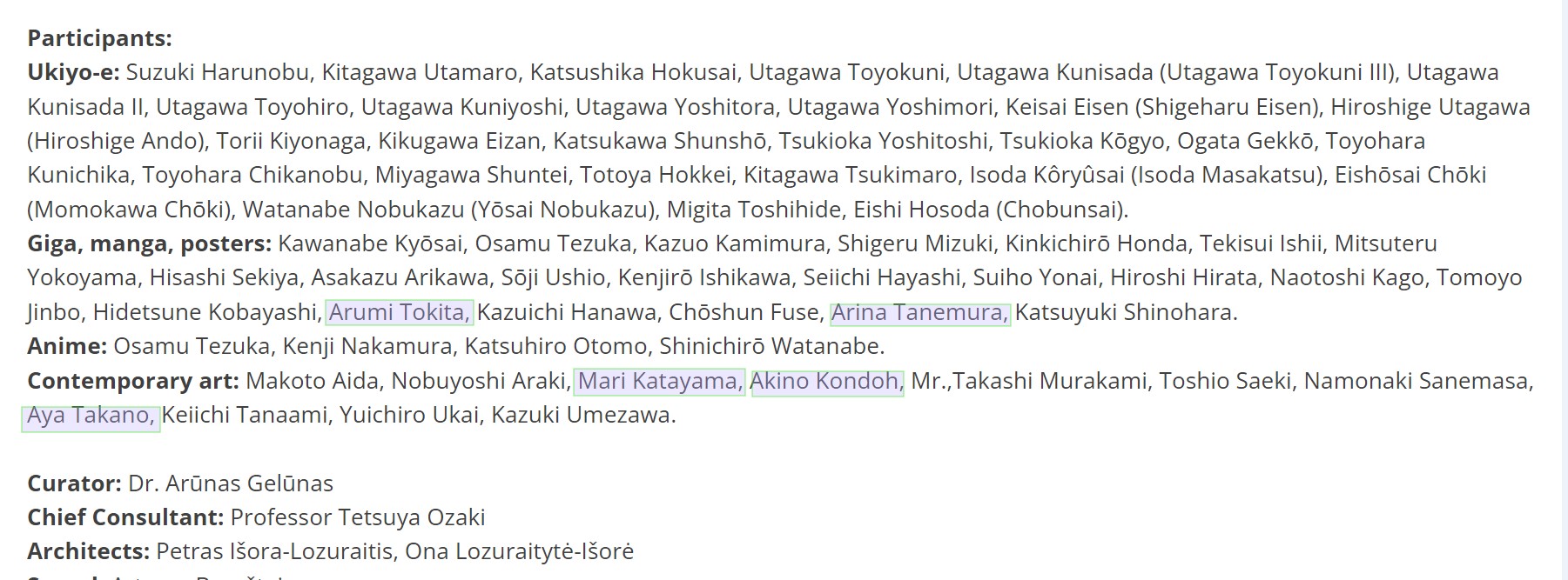 コンサルタントとして関わった日本人は京都芸術大学の小崎哲哉。
