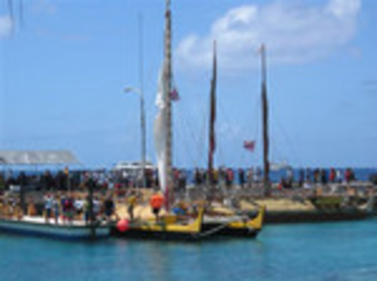 マジュロ在住の日本人の方が書いておられるウェブログに船団の歓迎式典の様子が書かれています。画像付きです。