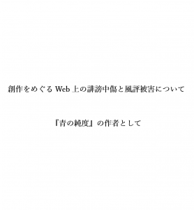 SNS上にて、憶測をもとに事実確認もしないまま、作家に対し「剽窃」などと断じる行為に対しては断固抗議いたします