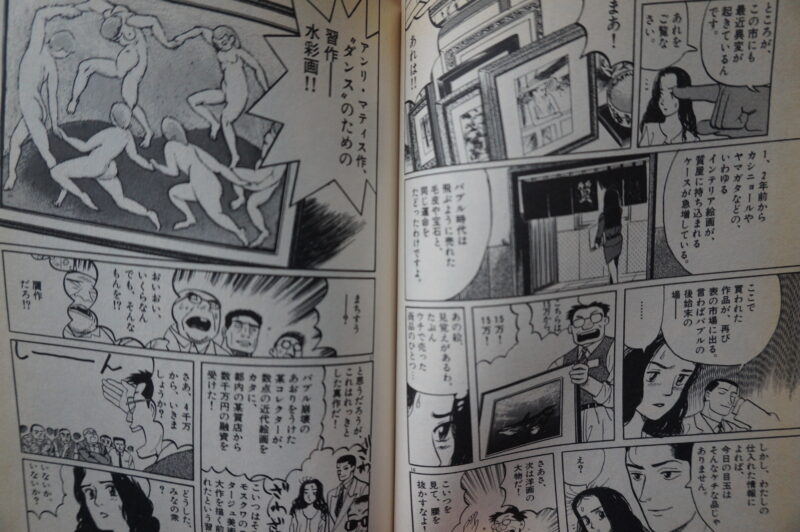 その二つ後のコマでは明らかにラッセンを念頭に置いた絵が描かれている。単行本は3巻所収。奥付は1994年4月1日初版1刷発行。添付した画像は50-51ページ。